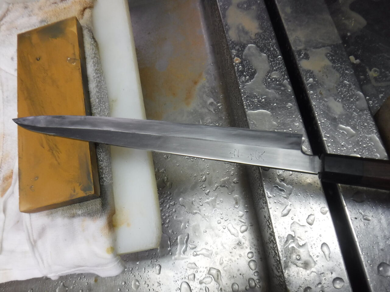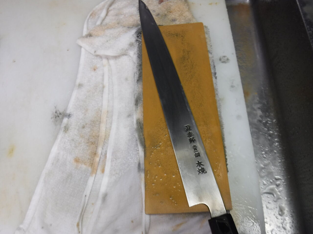 静まり返った厨房で包丁を研ぐ。